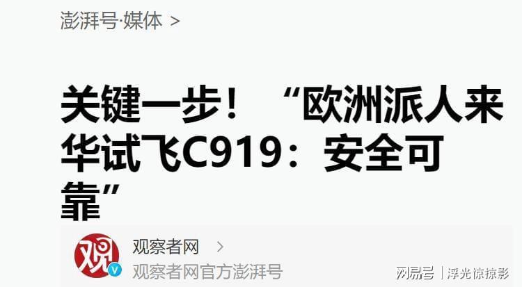 澎湃新闻:关键一步!“欧洲派人来华试飞C919:安全可靠”